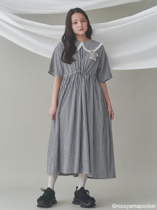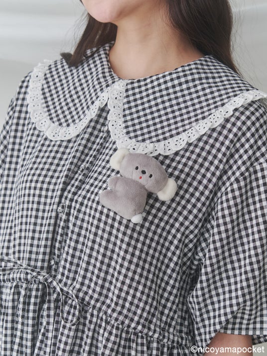 【にこやまポッケ】おすわりコアラのぬいぐるみキ゛ンカ゛ムチェックワンピース