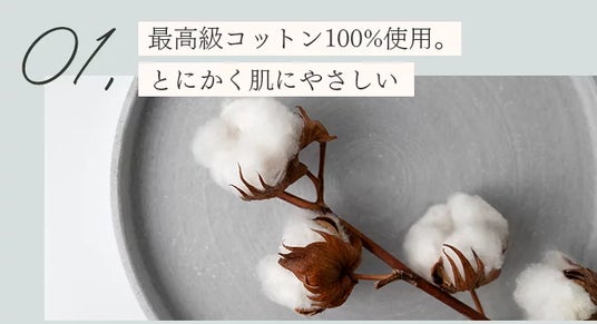 一般的な綿の約半分の細さを誇る超極細繊維が、なめらかで毛羽立ちにくく、デリケートな肌にもやさしく寄り添います。