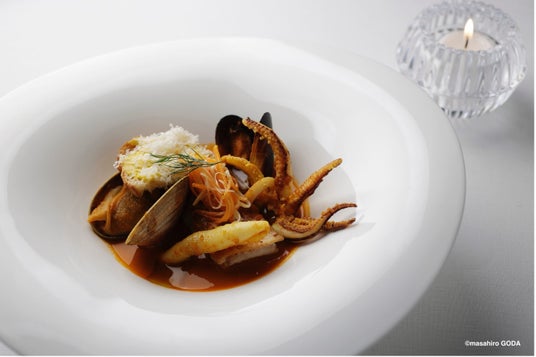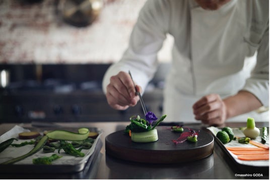 厨房で腕をふるうのは、総料理長の因藤徳郁。フランスでベルナール・ロワゾー、ジャック・マキシマンの両氏に師事し、帰国後は外資系ホテルなどのエグゼクティブシェフを経て、満を持して北海道に帰郷。豊かなEZO食材と丹念に向き合い、新たな挑戦ともなる‟道南ブイヤベース” “蝦夷鹿のパイ包み焼き a la MaliaCallas”など、繊細かつダイナミックな料理で魅了します。