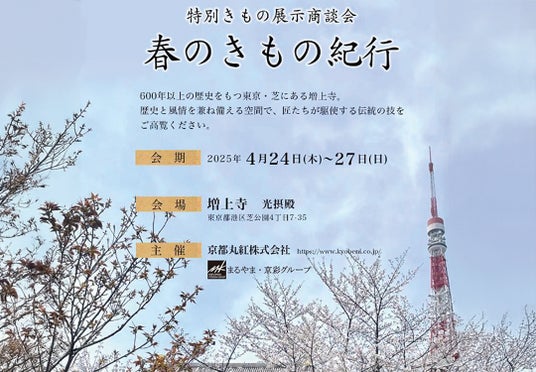 この特別なコレクションの発表会は、2025年4月24日(木)から27日(日)までの4日間、東京・芝増上寺にて開催される「令和7年特別きもの展示商談会:春のきもの紀行」の会場で行われます。日本の伝統工芸と片岡氏の芸術的感性が融合した、唯一無二の着物と帯の世界をぜひご覧ください。
