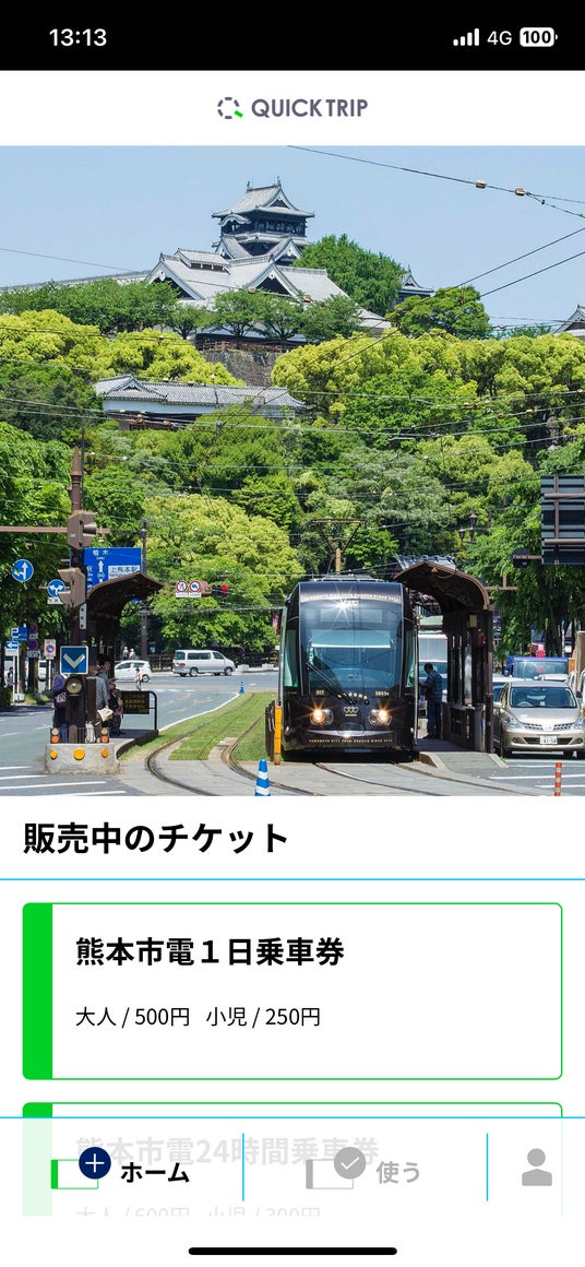 観光・イベント向けモバイルチケットシステム「QUICK TRIP」、熊本市電1日乗車券・24時間乗車券に導入