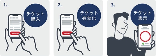購入したチケットを有効化してスマホ画面に表示し、係員に提示します。