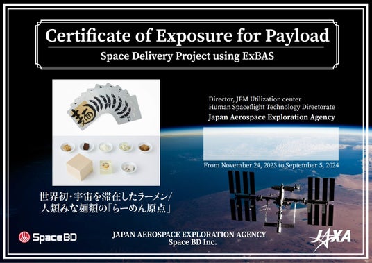<資料:世界初・宇宙を滞在したラーメン/人類みな麺類の「らーめん原点」ペイロードの露出証明書>