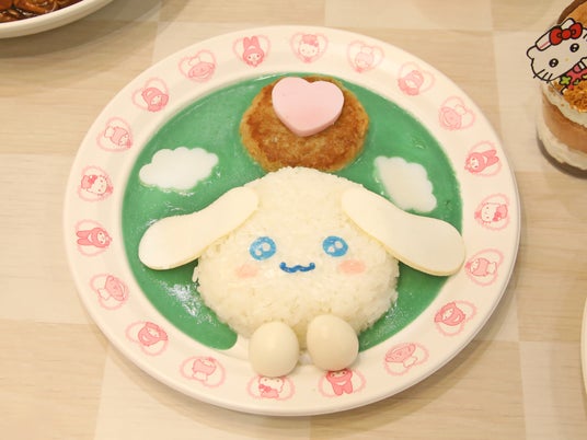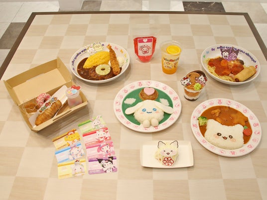 「シナモロールの舞いあがる(ハート)ふわふわチーズinハンバーグブルーカレー 」は、シナモロールがお空を飛んでいるようなかわいいデザイン。チーズinハンバーグをトッピングした色鮮やかなブルーカレーで、手はうずらの卵でできています。チェゴシムデザインになったシナモロールのお顔もポイント。また、モーニング数量限定の「今日がはじまる!モーニングセット ~チーズ入り肉巻きドッグ&プチデザート~」では、チーズ入り肉巻きドッグとプチデザートに、オリジナルキャラクターカードのノベルティが付きます。さらに、ビタミンカラーのドリンクや、クレープ、パフェなど、春らしい彩りのスイーツもラインナップされています。