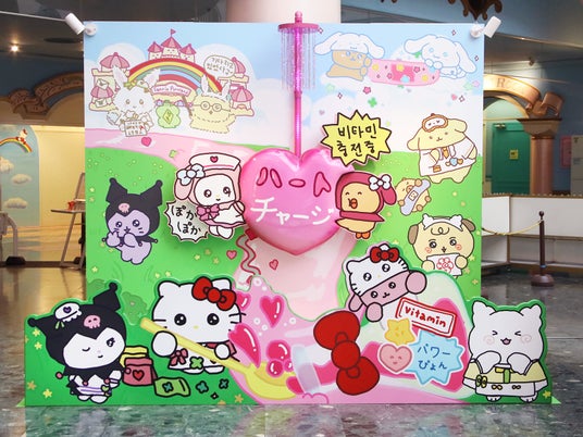 「ビタミンピューロ」では、新生活のスタートに向けた癒しと元気を届けるため、様々なコンテンツを展開しています。メインとなるのは、ドクターやナースをイメージした衣装を着たハローキティやマイメロディ、初登場となるはなまるおばけたちが登場する期間限定パレード「レッツちゅうにゅう~!春のビタミンタイム!」です。不思議なバブルの演出や、参加型の体操ダンスなどが楽しめる会場一体型の演出が魅力です。また、4Fに登場するフォトスポット「みんなのはなまるエピソード」では、ゲストが自身の“はなまるなエピソード”を記入し、SNSでシェアすることで、さらにみんなでハッピーを共有できます。