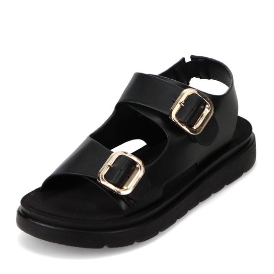 「will be」はレザー調のアッパーとゴールドカラーの金具で高級感のあるダブルベルトのサンダル。ピンクのワンピースにキャップとサンダルを合わせた甘辛MIXコーデをご紹介。
