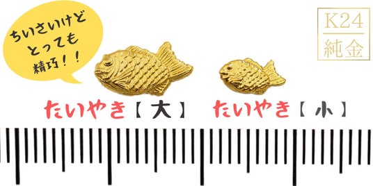 純金(999.9)製の1g/0.3gたい焼き型オブジェ