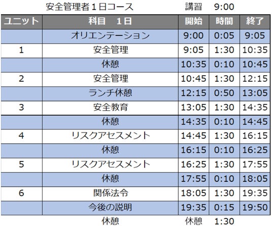 【安全管理者選任時研修1日コース】