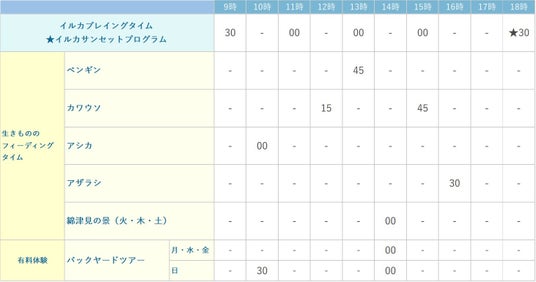 - 場所:イルカ棟2階 海豚プール・サンセットデッキ