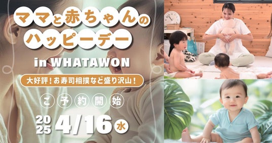 大阪府岸和田市の複合施設WHATAWON(ワタワン)にて、ママと赤ちゃんが一緒に楽しめるイベント『ママと赤ちゃんのハッピーデー』を開催します。可愛い瞬間を撮影し、ベビーマッサージで心を通わせるひとときを。ワークショップや赤ちゃん相撲など、親子で楽しめるコンテンツも充実。さらに、イベント参加者限定で育児相談をしながら、ANTIQUA TREE CAFEのスペシャルランチをゆっくり楽しめるサービスもご用意。