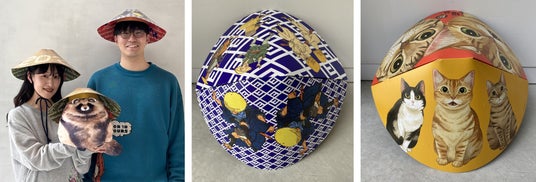 写真はデザインの一部となります。笠のデザインは上写真に加えて複数点ご用意していますが、どのデザインで受け取れるかは会場でのお楽しみです。