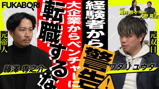 藤澤は本番組において、大企業からスタートアップへの転職経験や、その後の起業、M&A(会社売却)を経験した実体験をもとに、キャリア選択における重要なポイントや心構えについて語りました。大手企業からスタートアップへの転身について「安易に転職すべきものではない」と言及し、その一方で「スタートアップは正解を見つけていく団体」と表現するなど、リアルな経験談を交えながら視聴者へのメッセージを届けています。