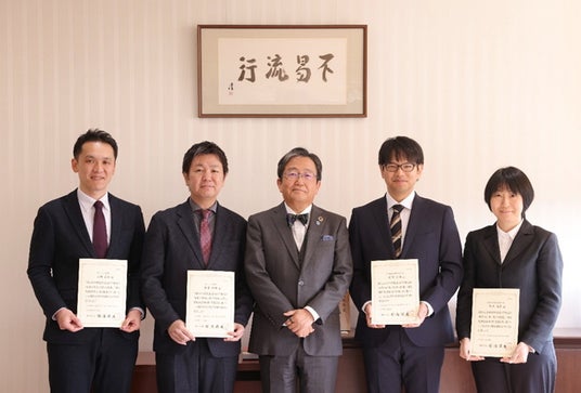 国立大学法人岡山大学(本部:岡山市北区、学長:那須保友)は、松本和幸講師、三瀬広記助教、石野貴雅助教、松本尚美助教に対し、「研究准教授」の称号を付与しました。2025年2月27日に称号付与式を開催し、那須保友学長から認定証が手渡され、受賞者の各研究内容について紹介がありました。