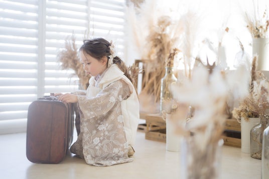 ~お子さまの成長の節目は、ゆったりと時間が流れるプライベート空間で。⾊合いにも質感にもこだわったコフレオリジナルのお⾐装で七五三やバースデーフォト、お食い初めなども~