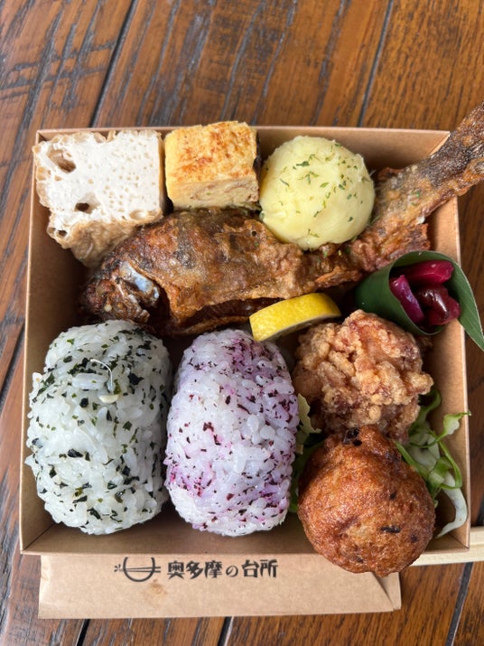 また、このお披露目に合わせ、「天空の奥多摩やまめ弁当」(税込1,480円)の販売も行います。この弁当は、地元で養殖されている奥多摩ブランドの新鮮な「奥多摩やまめ」を丁寧に調理し、奥多摩の自然をイメージした彩り豊かな一品です。伝統的な食材とアレンジを組み合わせ、見た目にも美しく仕上げました。日常の延長がアートであるとの言葉通り、大自然豊かな奥多摩町のどこで食べても「画になる」、このお弁当とともに、多くの皆さんに奥多摩での『食』を楽しんでほしいとの思いが込められています。