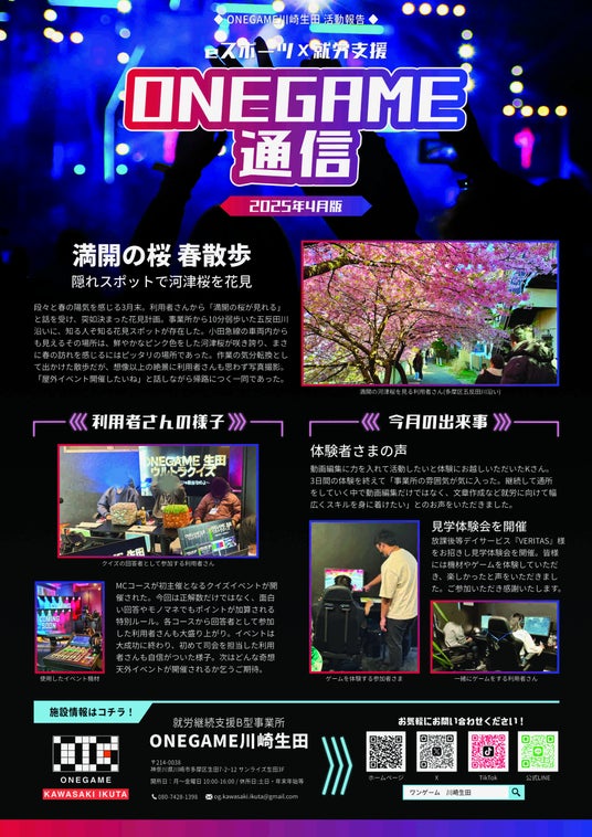 毎月発行しているONEGAME通信。利用者の方の近況やイベントの様子を配信しています。