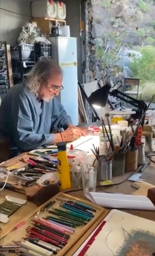アトリエで制作しているフェルナンド・コーマ氏