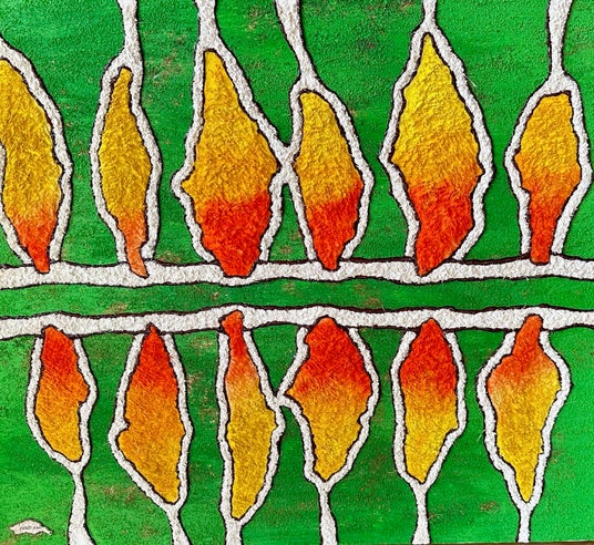 シーリングワックスとスペインの手隙紙を使い制作された立体感、鮮やかな色彩で表現したコーマアートの作品