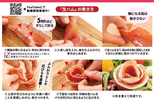 生ハムの巻き方:https://www.youtube.com/watch?v=CiORUlvKHKU