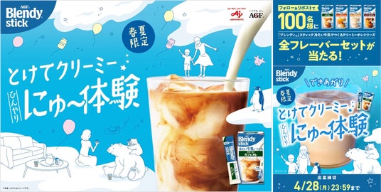 味の素AGF株式会社(代表取締役社長:島本 憲仁 以下、味の素AGF)は、《「ブレンディ(R)」スティック 冷たい牛乳でつくるクリーミーオレ》シリーズにおいて、《「ブレンディ(R)」スティック ひんやりにゅ~体験キャンペーン》を2025年4月14日(月)から2025年4月28日(月)まで実施します。