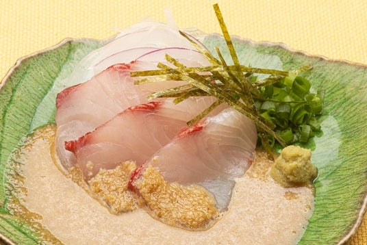 ごまカンパチ 880円福岡の名物料理「ごまカンパチ」。脂ののったカンパチと、練りごまを加えた特製濃厚ごまソースでお召し上がりください。