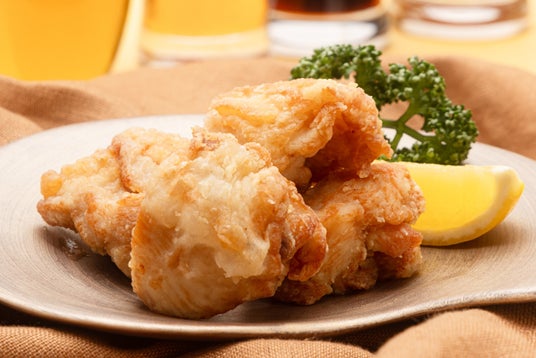 華味鳥の塩唐揚げ(2個) 620円旨味豊かで濃厚な味わいの「九州産華味鳥」を使用したこだわりの唐揚げです。