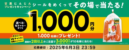 青果の総合流通企業の株式会社ファーマインド(本社:東京都千代田区、代表取締役社長兼COO:小林 格)は、2025年4月14日(月)より、選べる電子マネーギフトが当たる『甘果にんじん春キャンペーン』を実施いたします。