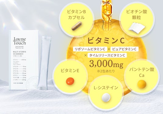 美容クリニックで処方されるビタミン成分を基準に開発!美容医療発想のビタミンサプリ《 Lov me TouchマルチビタミンVC3000BEH 》新発売!