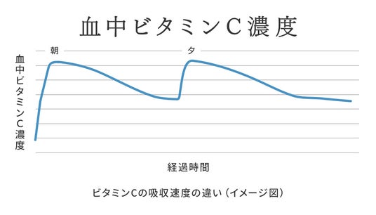 ビタミンCは水溶性であり、体内に長く留まりにくいという課題がございます。本製品では、吸収速度の異なる3種類のビタミンCを配合することで、持続力を強化しました。朝・夕の2回に分けて摂取していただくことで、体内への吸収を効率化し、美容と健康を一日中サポートします。