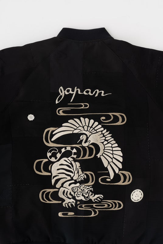 上記のほか、ヴィンテージキモノを「百徳(着物)」のように縫い繋げ仕立てた羽織「鶴虎 HYAKUTOKU BLACK(110,000円(税込))」も展開予定。YAMATO Lab.だからこそできる、スカジャンとキモノの融合を、是非お手に取ってご覧ください。