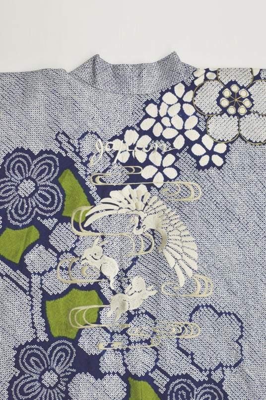 子供の健やかな成長を願い端切れを縫い繋げる「百徳着物」に着想を得て、ヴィンテージキモノをパッチワークのように継ぎ接ぎしたジャケットと、現代では希少な細かな絞り染めきものから仕立てた羽織に、オリジナルの刺繍を施した特別なシリーズです。