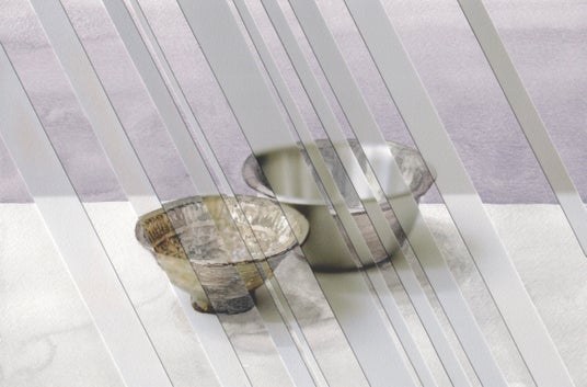 ≪Still Life, Antique Bowl and Plastic Bowl (parallax_17)≫ 19.8×28.6cm / 写真、紙に水彩 / 2024≫