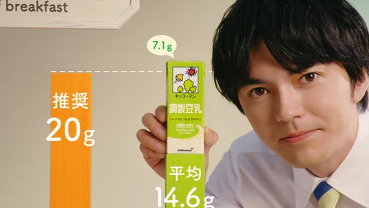 2025年4月1日(火)から、キッコーマン豆乳の新TVCM「満たんぱく」篇を全国(一部エリアを除く)で放映します。俳優の林遣都さんが、朝食シーンにおける日本人のたんぱく質不足に対して「豆乳で朝の満たんぱく」を爽やかに推奨する姿が印象的なCMとなっています。