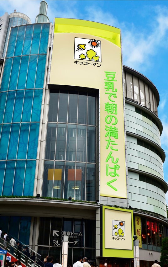 東京ドームシティ内の高さ28mの巨大ビジョンでキッコーマン豆乳のブランドムービーを放映 「ミーツポートビジョン」の上段・中段・下段を一体的に使用した“初の企業映像放映”