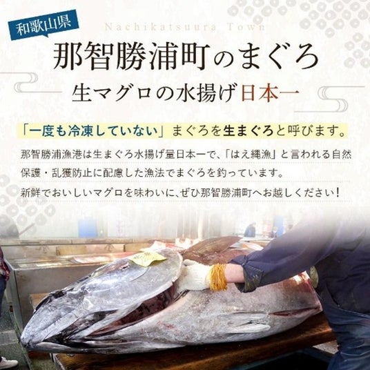 「生まぐろ量水揚げ日本一」を誇る那智勝浦町の「生まぐろ」は、その鮮度と品質の高さが評価されており那智勝浦町のふるさと納税返礼品としても大人気です。