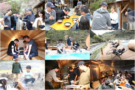 グランドオープン当日は、15組、40名のお客様が宿泊されました。グランドオープンイベントにご参加いただいた後、グランドオープン記念としてうきは産の蕎麦をはじめとした地域の特産品を活かした昼食をご提供いたしました。午後はバレルサウナ&学校プールでの整い体験や、BBQ&キャンプファイヤーを開催し、春のうきはをお楽しみいただきました。
