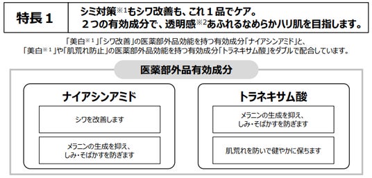 ●有効成分として「ナイアシンアミド」と「トラネキサム酸」を配合。