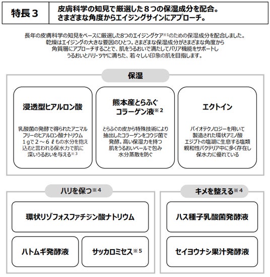 ※3 年齢に応じた化粧品によるお手入れ ※4 うるおいによる ※5 ヒアルロン酸ナトリウム(保湿成分)