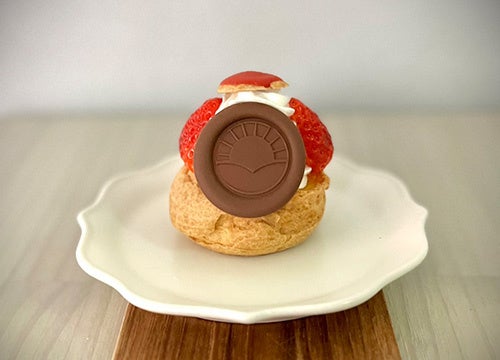 洋菓子フェスタでは、オリジナルシュークリームを販売!シュー生地にカスタードとバニラの生クリームをたっぷりとつめ、仕上げに苺をまわりにあしらいました。