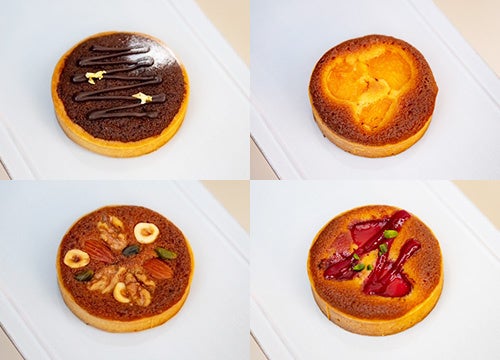 チョコ好きの濃いタルトショコラ、熊本県デコポンのタルト、ラム香るナッツのタルト、香るいちごのタルトの4種類のタルトを詰合せました。