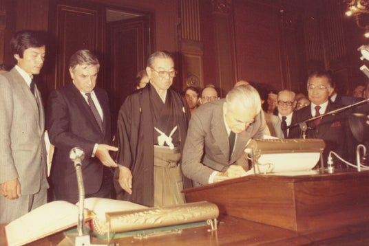 福岡市とボルドー市の交流の歴史は長く、1977年にまでさかのぼります。この年に当時の九州日仏学館館長から両市縁組の話が持ち込まれました。その後、民間団体のボルドー訪問、児童画展や写真展の開催、九州大学とボルドー大学の姉妹提携など、市民レベルの交流の積み重ねが実り、1982年11月に姉妹都市締結に至りました。