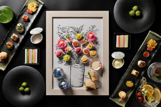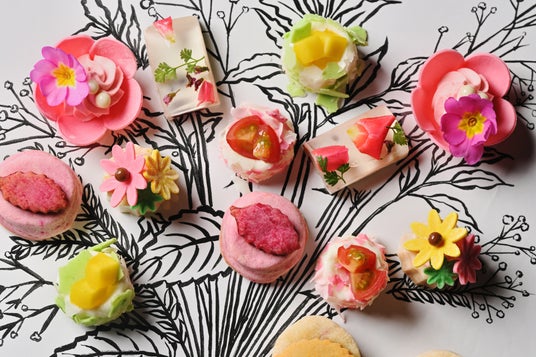 6月から8月の期間、日程限定で販売いたします。季節ごとにメニューがかわるアフタヌーンティーの今回のテーマは、「花」。額縁で供するお花のデザートは、テーブルで完成する「仕掛けのある」アートです。さらに、健康を意識した食材にもこだわりました。夏の野菜をふんだんに使ったセイボリーの盛り付けも色とりどりで、テーブルトップはお花が咲き乱れた絵画のようです。