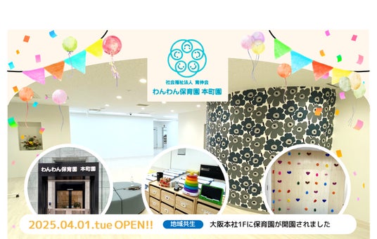 株式会社ヤギ(本社:大阪市中央区・東京都中央区、代表取締役 社長執行役員:八木隆夫、以下「当社」)の大阪本社所在地、八木ビルの1Fに社会福祉法人 育伸会(理事長:丸岡佳代)様が運営する『わんわん保育園 本町園』が開園しました。
