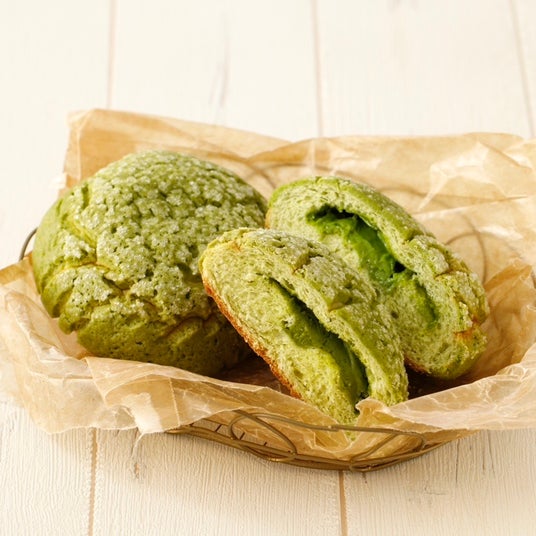 抹茶風味のクッキー生地のホロホロ感と、濃厚な味わいの抹茶フィリングを包み、焼き上げました。生地にも抹茶を使用しているので、抹茶好きにはたまらない贅沢なメロンパンです。