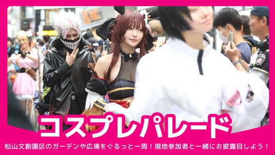 「コスプレパレード」 約60 名のコスプレイヤーが参加 し、松山文創園区のガーデンや広 場を一周、パレードします