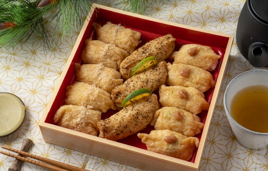 また、行楽シーズンに合わせて「一口いなり むろや」で長年愛される定番のいなりたちが、お重に入って登場します。特別な香り高い油揚げが生み出す伝統の味「一口いなり」。香ばしい炙りの風味と旬のすだちの爽やかな香りが鼻をくすぐる「炙りいなり」。梅の酸味とわさびの刺激が絶妙なハーモニーを醸し出す「梅わさびいなり」。この人気の3種類(一口いなり、炙りいなり、梅わさびいなり)を詰め合わせた『花形いなり』は、それぞれ異なる魅力を持つ人気の味を一度にお楽しみいただけます。「むろや」の味をまだご存知ない方も、長年ご愛顧いただいている方も。この機会に、「むろや」の味を心ゆくまでお楽しみください。