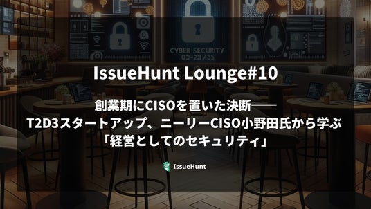 IssueHuntが不定期開催しているプロダクトセキュリティに関するクローズドなコミュニティイベント「IssueHunt Lounge」の第10回目として、『創業期にCISOを置いた決断──T2D3スタートアップ、ニーリーCISO小野田氏から学ぶ 「経営としてのセキュリティ」』を開催いたします。