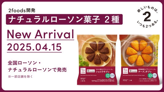 株式会社TWO(本社:東京都渋谷区/代表取締役CEO:東 義和)が手掛ける、“欲しいものは、いつも2つある。”を掲げるフードブランド「2foods(トゥーフーズ)」は、株式会社ローソン(本社:東京都品川区、代表取締役 社長:竹増 貞信)がローソン店舗で展開するナチュラルローソン菓子シリーズの「カカオ香るプラントベース ショコラサブレ」※1、2「黒胡椒香るプラントベース チーズサブレ」※1、3、4 の2種を開発し、4月15日(火)より全国のローソン、ナチュラルローソン(※一部店舗を除く)発売いたします。