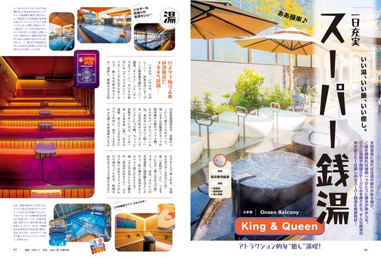 天然温泉に浸れば日頃の疲れが吹き飛び、ご飯を頬張れば細胞一つひとつに養分が染み入る。さらに景観や熱唱ステージに心を癒される。そんな銭湯の枠を超えた1日楽しめる「スーパー銭湯」も徹底取材しています。