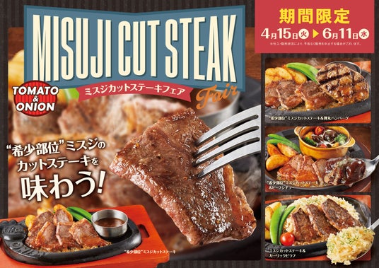 株式会社トマトアンドアソシエイツ(本社:兵庫県西宮市、代表取締役社長:笹村 啓介)が運営する、アメリカンダイニングレストラン「トマト&オニオン」では、2025年4月15日(火)より期間限定「ミスジカットステーキフェア」を開催いたします。